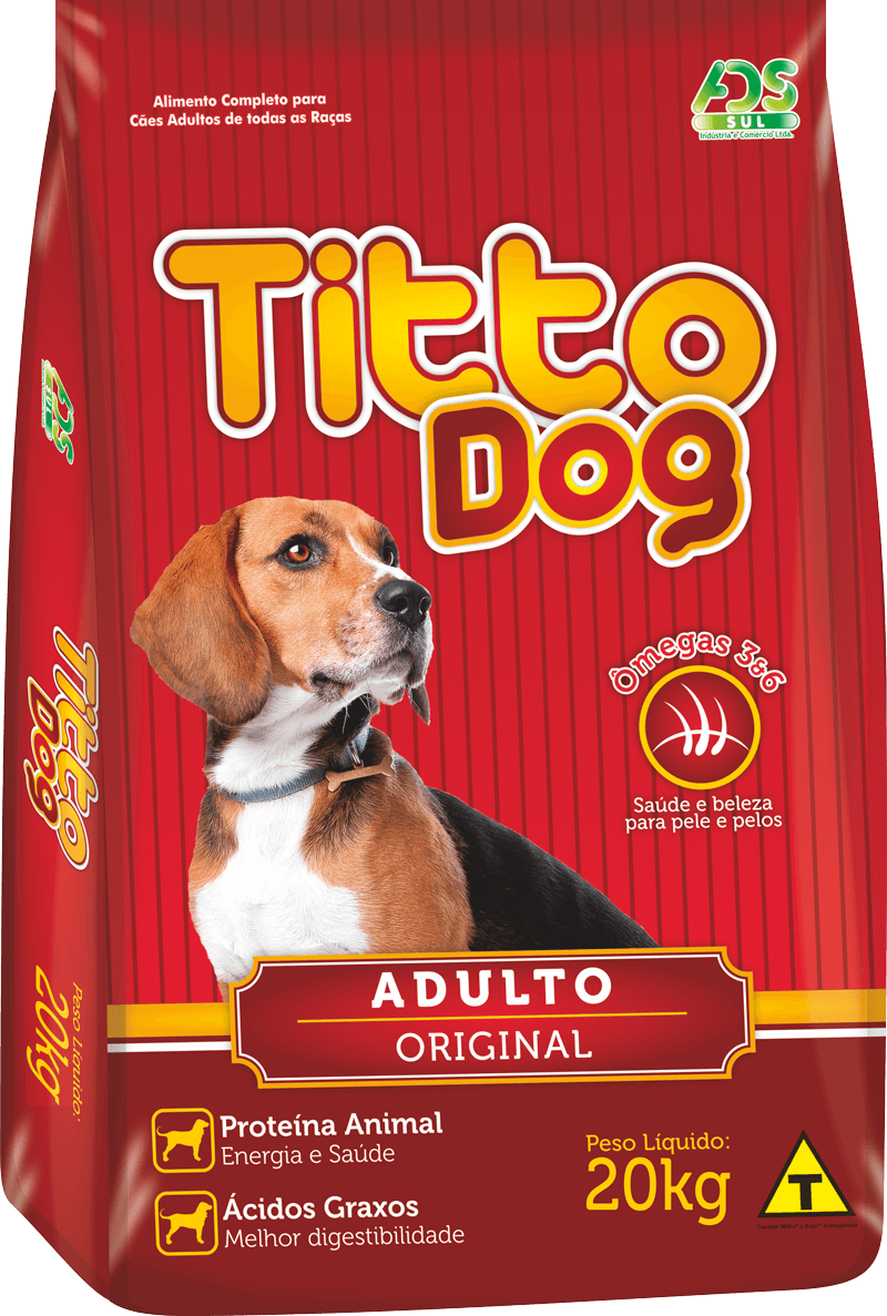 Titto Dog Original é um alimento completo e balanceado, desenvolvido para cães das mais diversas raças e produzido com matérias-primas de alta qualidade.
