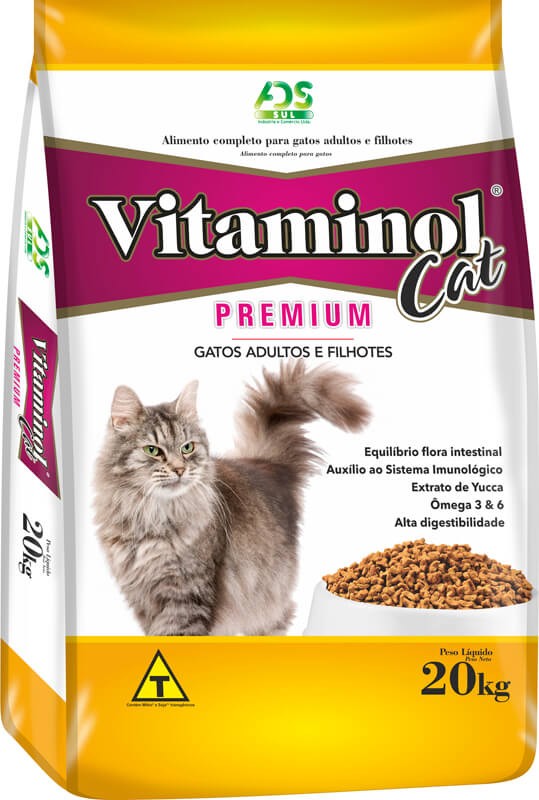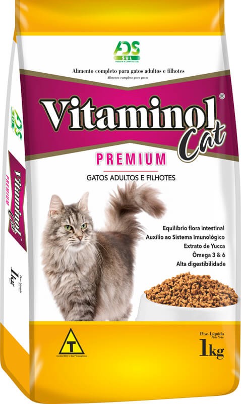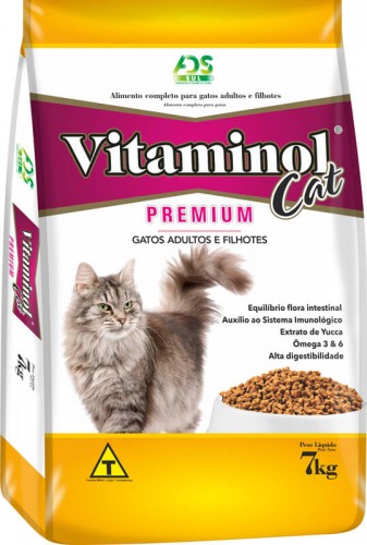 Vitaminol Cat Premium é um alimento completo e balanceado desenvolvido especialmente para gatos adultos e filhotes de todas as raças. A utilização de matérias primas de alta qualidade remete a um produto rico em proteínas, carboidratos, Ômegas 3 e 6, tendo a função de aumentar a energia, melhorando a digestão e constante brilho dos pelos do seu animal de estimação.